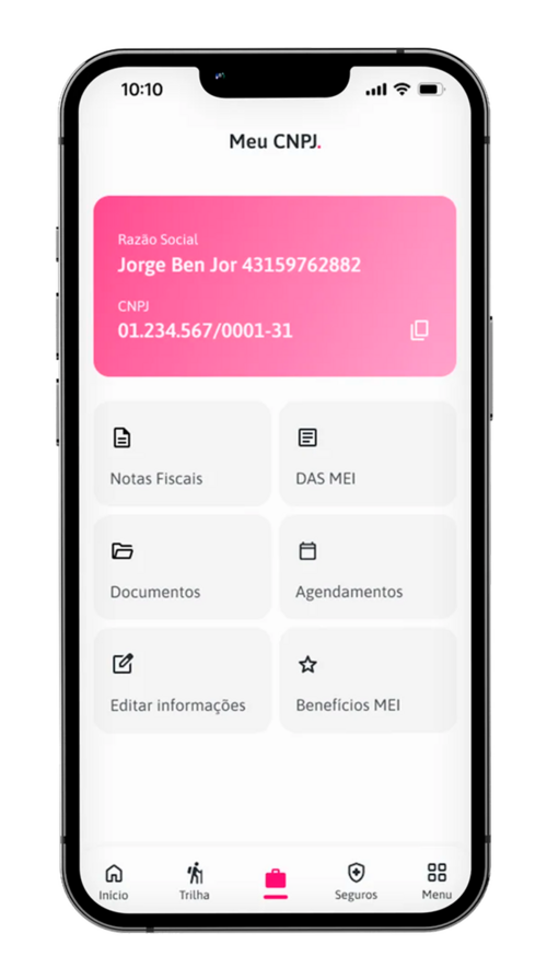 Abertura e gestão do CNPJ, emissão de notas fiscais, pagamento de DAS, proteção financeira e cuidado com a saúde: tudo para o PJ em um único app.